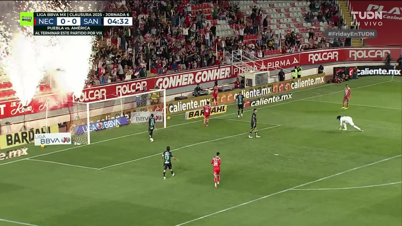 ¡Gol! Necaxa 1| Santos Laguna 0. Diber Cambindo (Necaxa) Disparo con la derecha desde el centro del área.