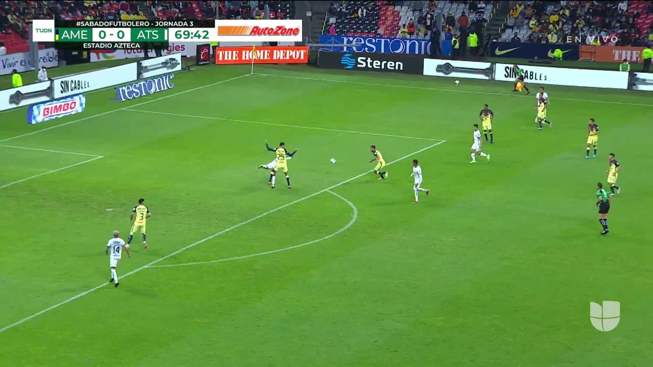 ¡Gol! América 0| Atlas 1. Diego Barbosa (Atlas) Disparo con la derecha desde el lado derecho dentro del área.