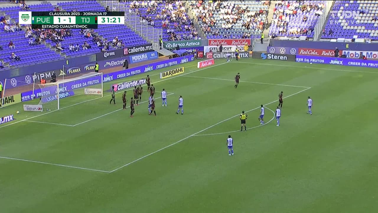 ¡Gol! Puebla 2| Club Tijuana 1. Diego de Buen (Puebla) Disparo con la derecha desde muy cerca disparo rastrero| junto al palo izquierdo. Asistencia de Luis Garcia con un centro al área tras un saque de esquina.
