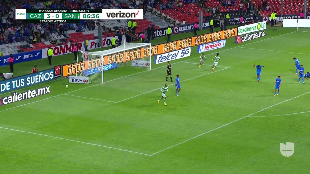 ¡Gol! Cruz Azul 3| Santos Laguna 1. Diego Medina (Santos Laguna) Disparo con la derecha desde el centro del área disparo rastrero| junto al palo izquierdo.