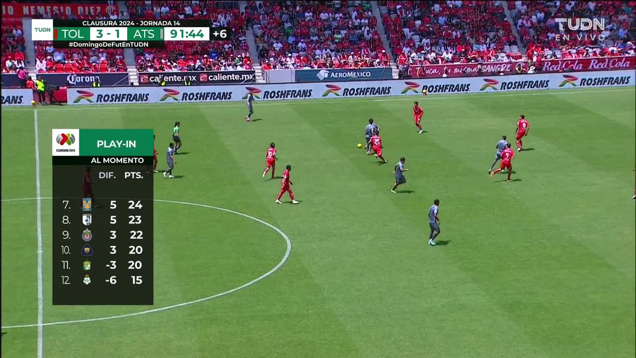 ¡Gol! Toluca 4| Atlas 1. Édgar López (Toluca) Disparo con la derecha desde el centro del área por el centro del arco. Asistencia de Federico Pereira tras un contragolpe.