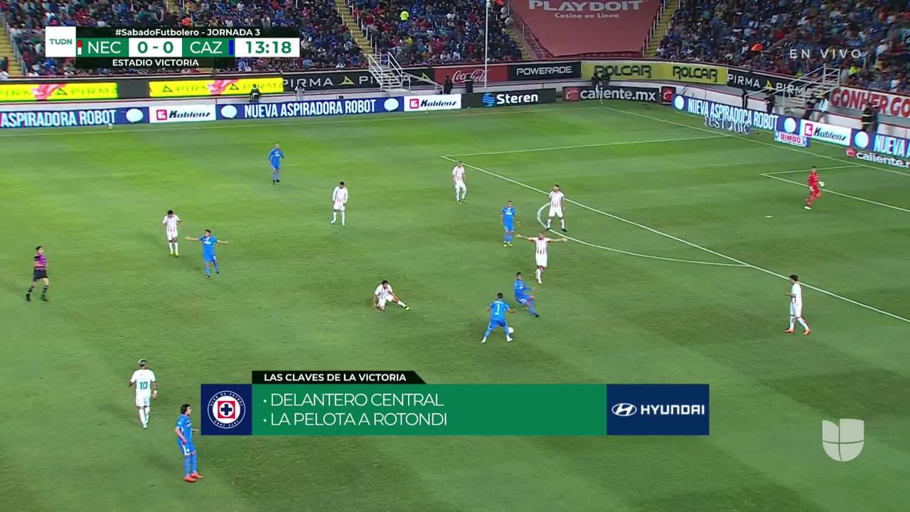 ¡Gol! Necaxa 1| Cruz Azul 0. Édgar Méndez (Necaxa) Disparo con la derecha desde el lado derecho dentro del área.