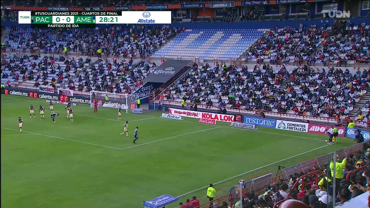 ¡Gol! Pachuca 1| América 0. Érick Aguirre (Pachuca) disparo de cabeza desde el centro del área tras un saque de esquina.