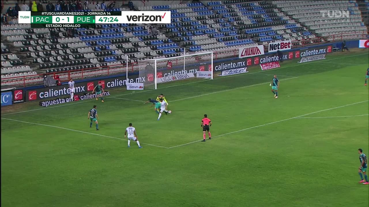 ¡Gol! Pachuca 1| Puebla 1. Erick Sánchez (Pachuca) Disparo con la derecha desde el centro del área por arriba.