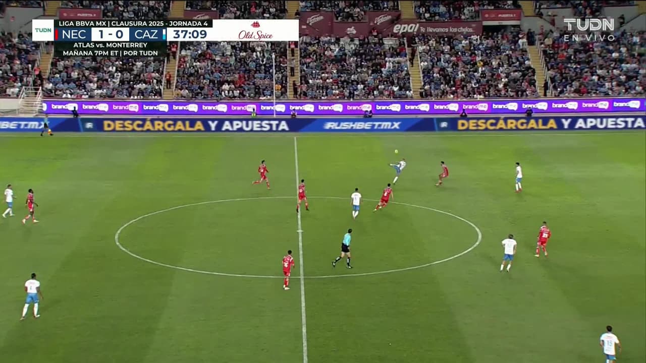 ¡Gol! Necaxa 1| Cruz Azul 1. Érik Lira (Cruz Azul) Disparo con la derecha desde fuera del área.