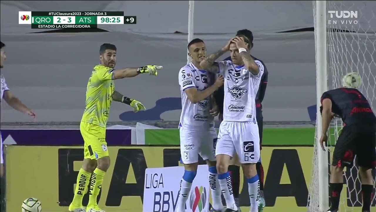 ¡Gol! Querétaro 3| Atlas 3. Ettson Ayón (Querétaro) disparo de cabeza desde el centro del área.
