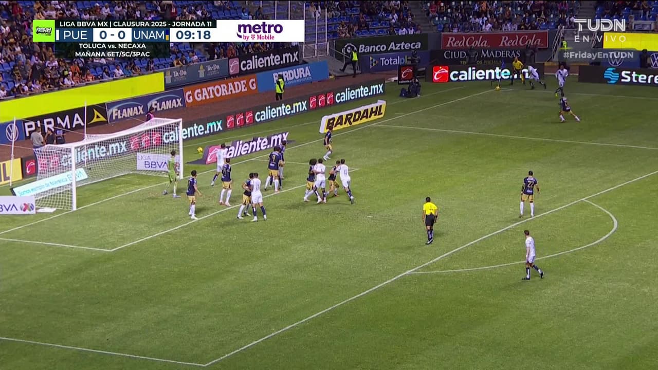 ¡Gol! Puebla 1| Pumas UNAM 0. Facundo Waller (Puebla) zurdazo a quemarropa desde el lado izquierdo disparo rastrero| junto al palo izquierdo.