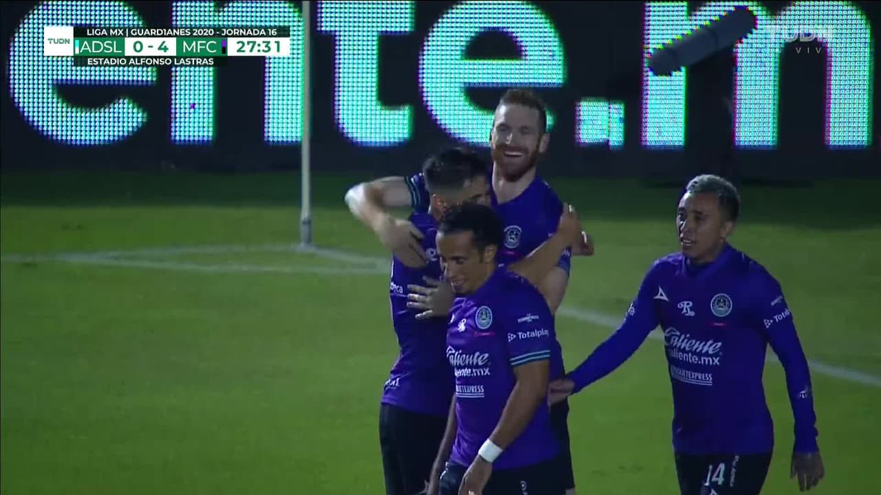 ¡Gol! Atlético San Luis 0| Mazatlán FC 4. Fernando Aristeguieta (Mazatlán FC) zurdazo desde el centro del área disparo rastrero| junto al palo izquierdo. Asistencia de Camilo Sanvezzo.