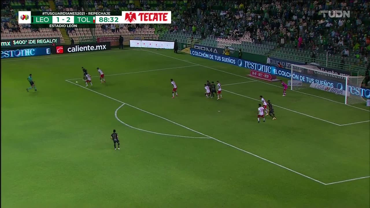 ¡Gol! León 2| Toluca 2. Fidel Ambríz (León) Disparo con la derecha desde fuera del área.