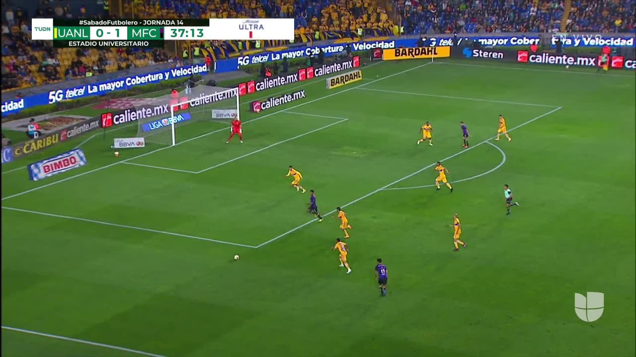 ¡Gol! Tigres 0| Mazatlán FC 2. Francisco Venegas (Mazatlán FC) disparo de cabeza a quemarropa desde el lado izquierdo.