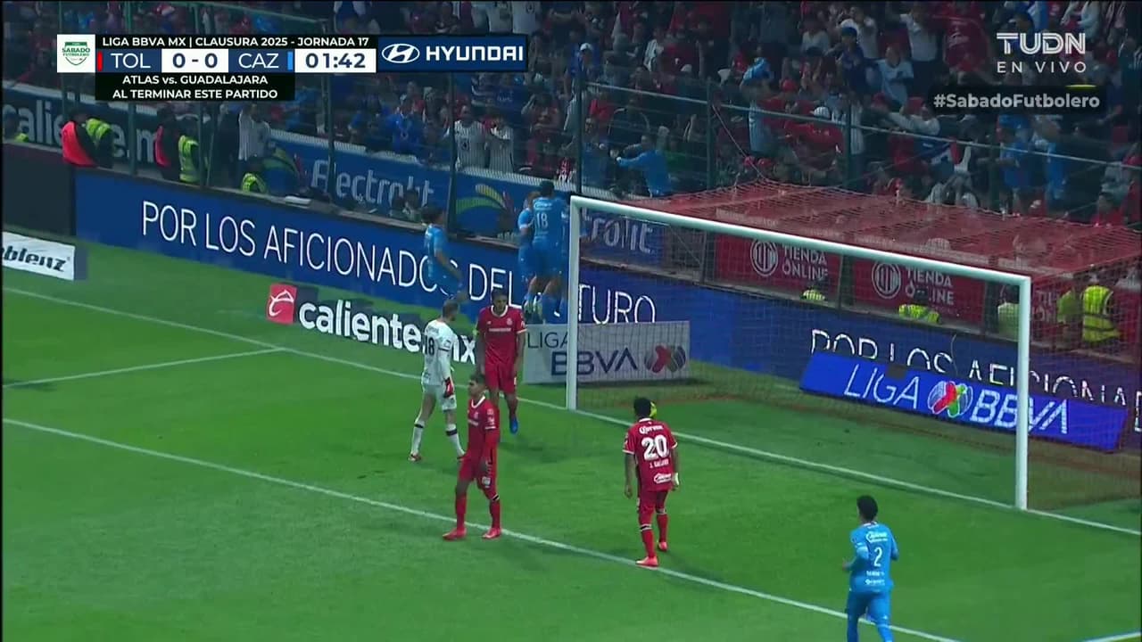 ¡Gol! Toluca 0| Cruz Azul 1. Gabriel Fernández (Cruz Azul) Disparo con la derecha desde muy cerca.