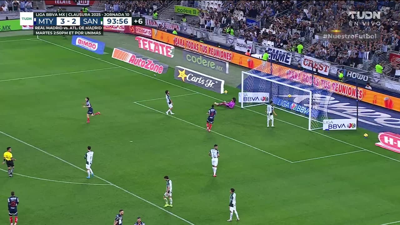 ¡Gol! Monterrey 4| Santos Laguna 2. Gerardo Arteaga (Monterrey) zurdazo desde el centro del área.