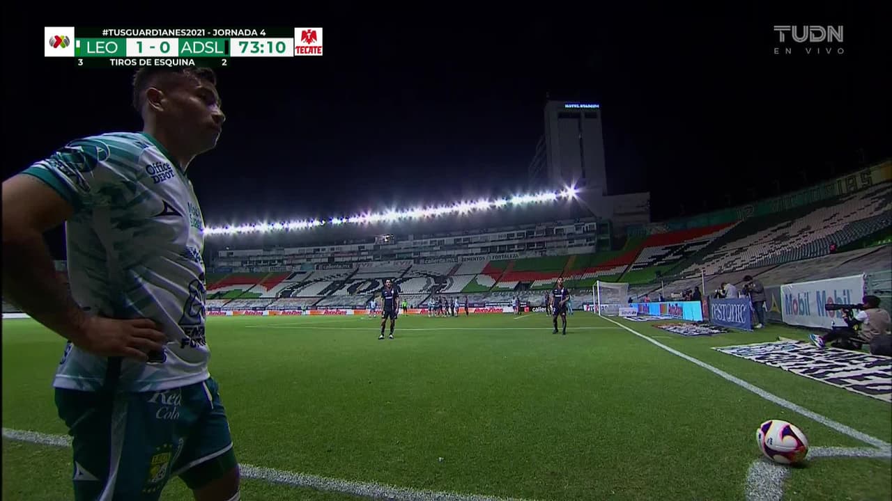 ¡Gol! León 1| Atlético San Luis 1. Germán Berterame (Atlético San Luis) disparo de cabeza desde muy cerca.