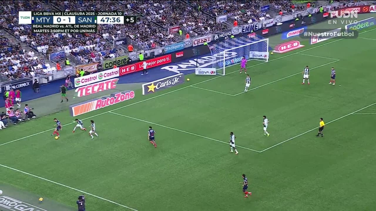 ¡Gol! Monterrey 1| Santos Laguna 1. Germán Berterame (Monterrey) Disparo con la derecha desde el centro del área.