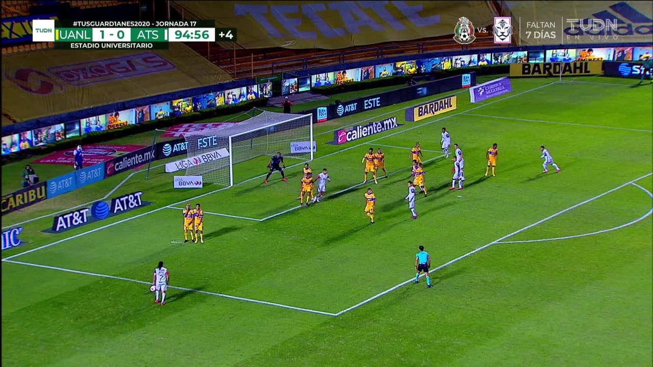 ¡Gol! Tigres 1| Atlas 1. Germán Conti (Atlas) disparo de cabeza desde muy cerca por el lado derecho de la portería. Asistencia de Víctor Malcorra con un centro al área tras el cobro de una falta.