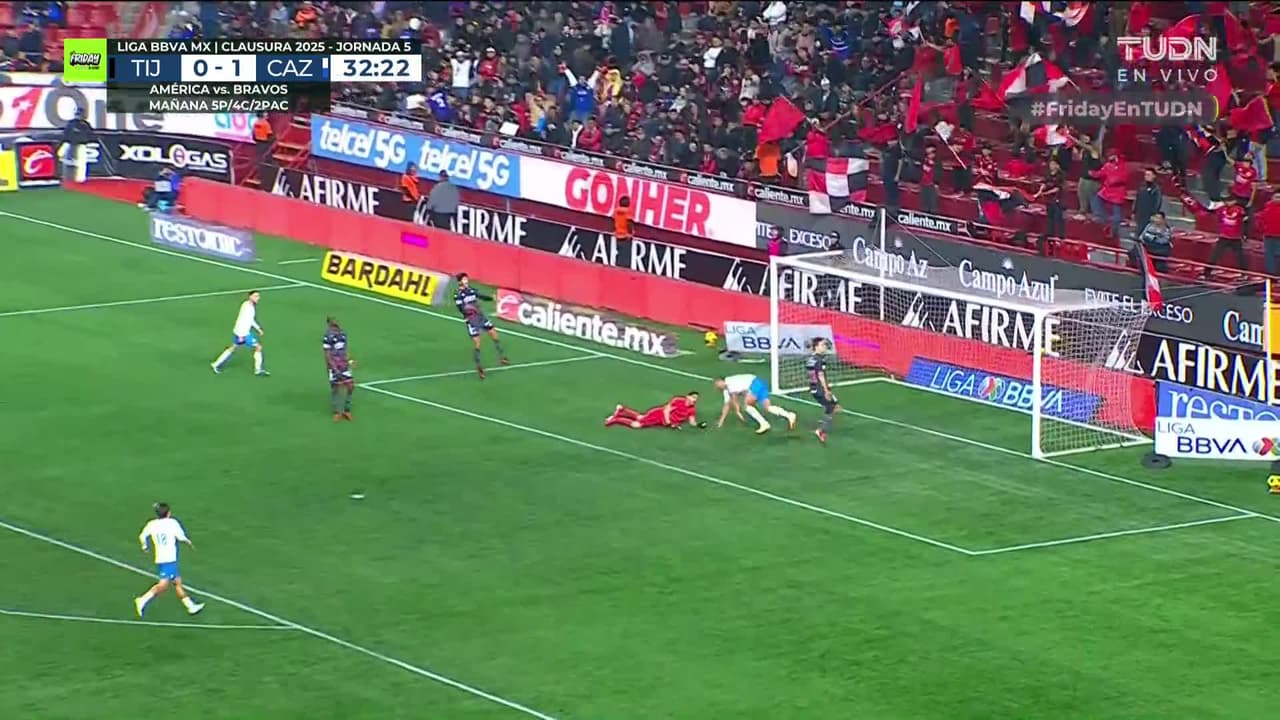¡Gol! Club Tijuana 0| Cruz Azul 2. Giorgos Giakoumakis (Cruz Azul) disparo de cabeza desde muy cerca disparo rastrero| junto al palo izquierdo.