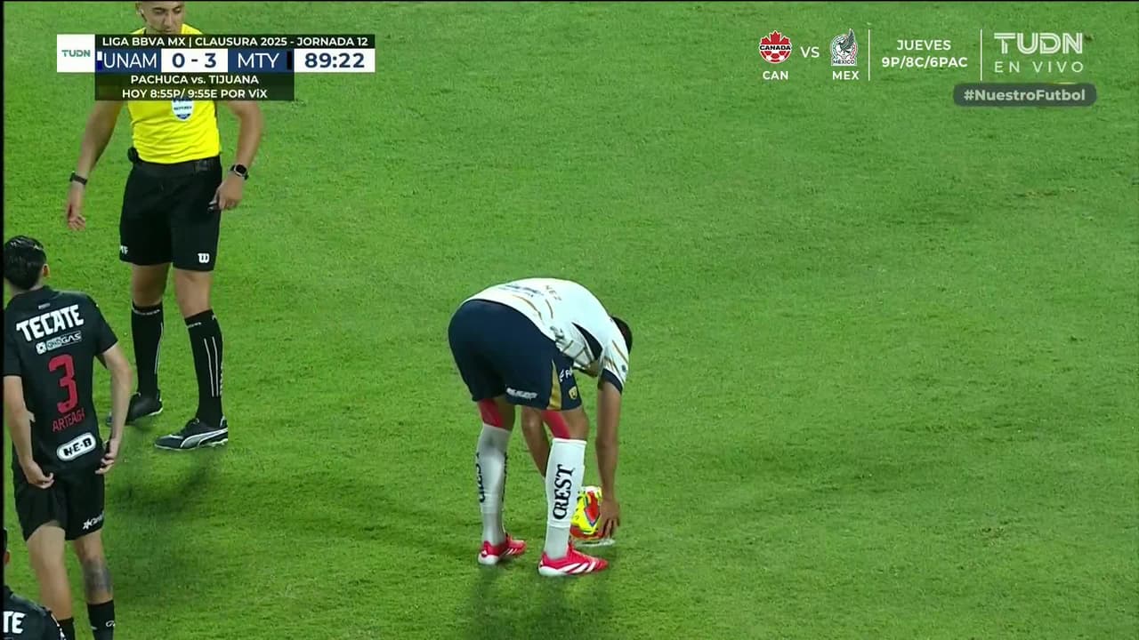 ¡Gol! Pumas UNAM 1| Monterrey 3. Guillermo Martínez (Pumas UNAM) convirtió el penalti zurdazo.