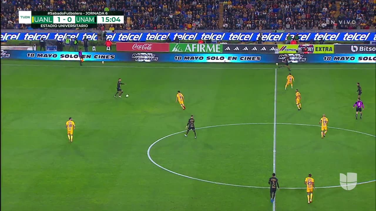 ¡Gol! Tigres 1| Pumas UNAM 1. Gustavo del Prete (Pumas UNAM) zurdazo desde el centro del área.