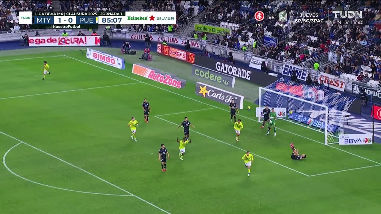 ¡Gol! Monterrey 1| Puebla 1. Gustavo Ferrareis (Puebla) disparo de cabeza desde el centro del área.