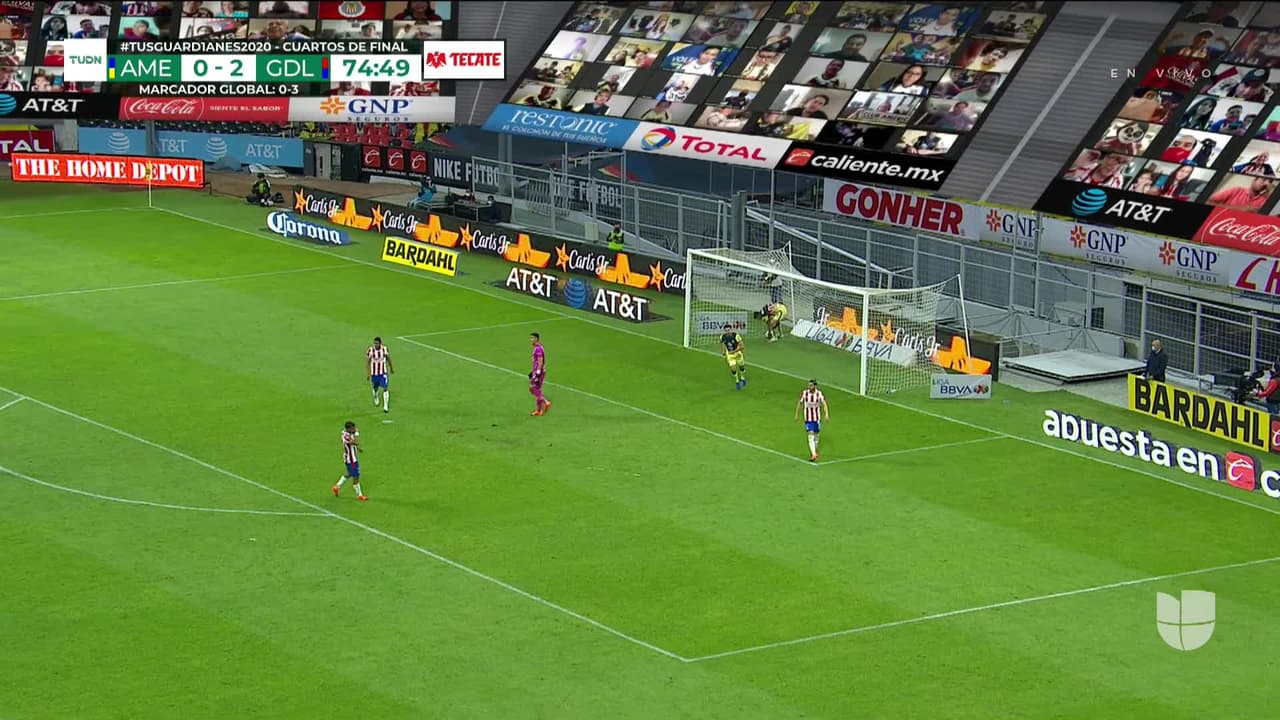 ¡Gol! América 1| Chivas 2. Henry Martín (América) Disparo con la derecha desde el centro del área al centro de la portería. Asistencia de Sergio Díaz pase largo tras un contragolpe.