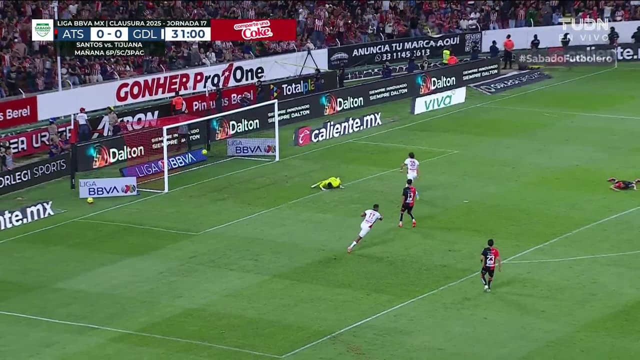 ¡Gol! Atlas 0| Chivas 1. Hugo Camberos (Chivas ) Disparo con la derecha desde fuera del área.