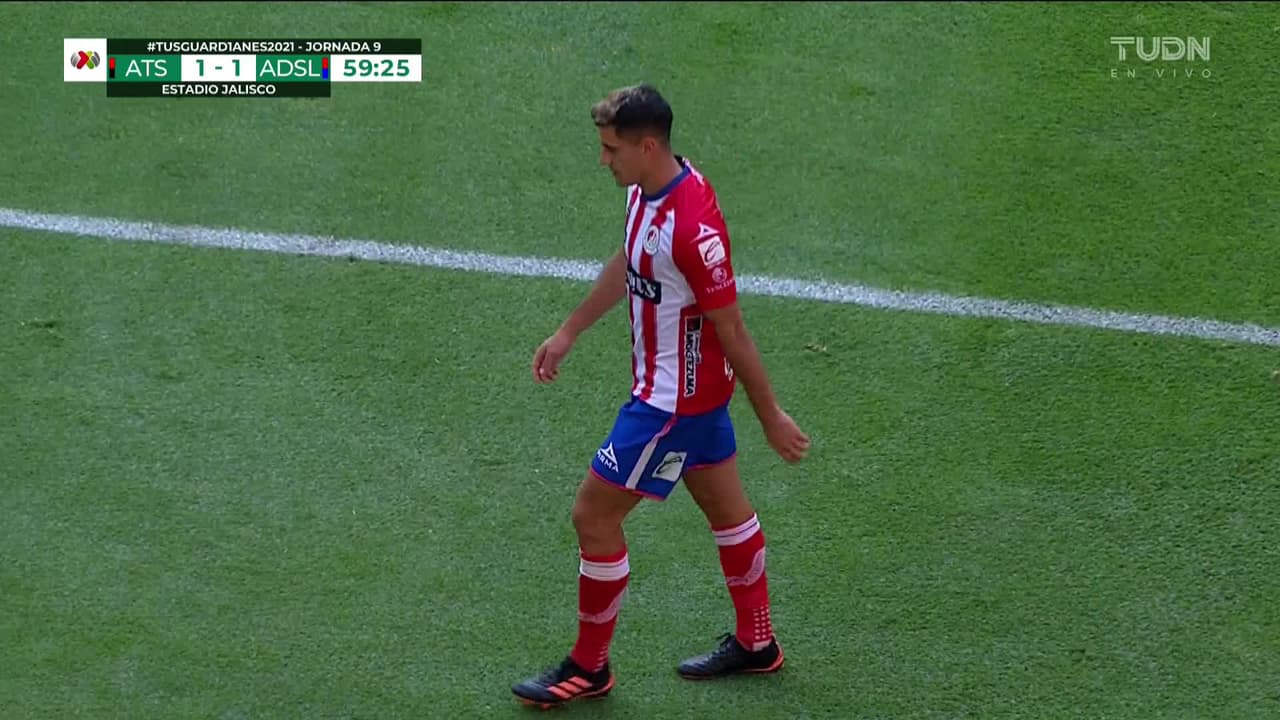¡Gol! Atlas 2| Atlético San Luis 1. Jairo Torres (Atlas) disparo de cabeza desde muy cerca por arriba.
