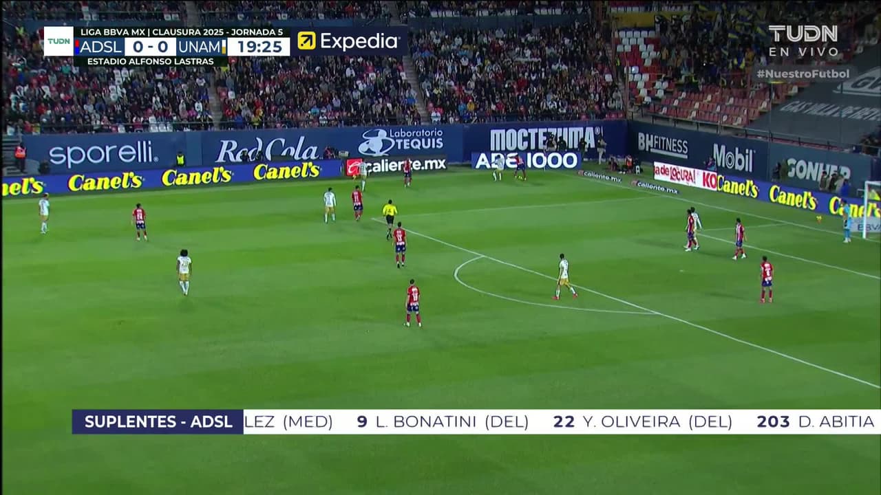 ¡Gol! Atlético San Luis 0| Pumas UNAM 1. Ignacio Pussetto (Pumas UNAM) Disparo con la derecha desde el lado izquierdo dentro del área.