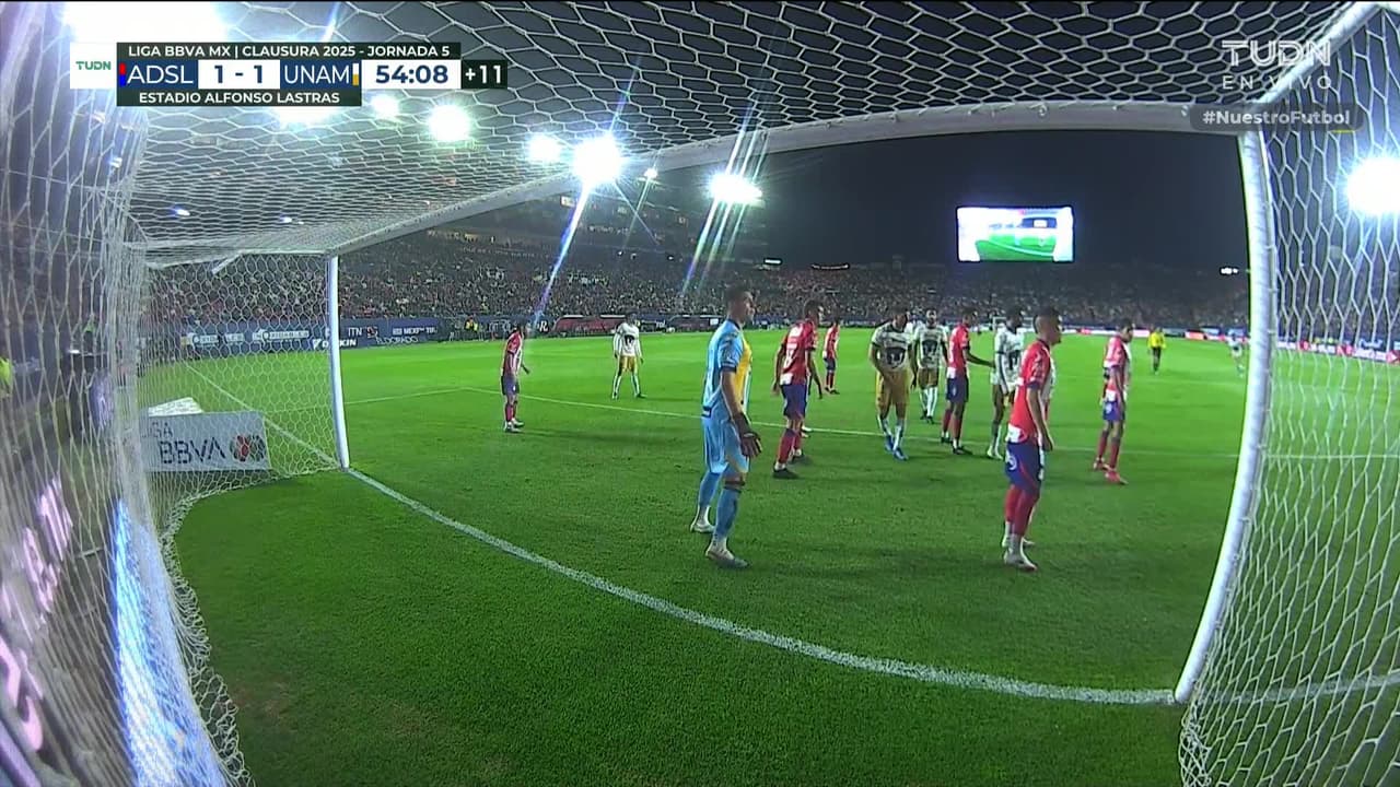 ¡Gol! Atlético San Luis 1| Pumas UNAM 2. Ignacio Pussetto (Pumas UNAM) disparo de cabeza desde muy cerca tras un saque de esquina.