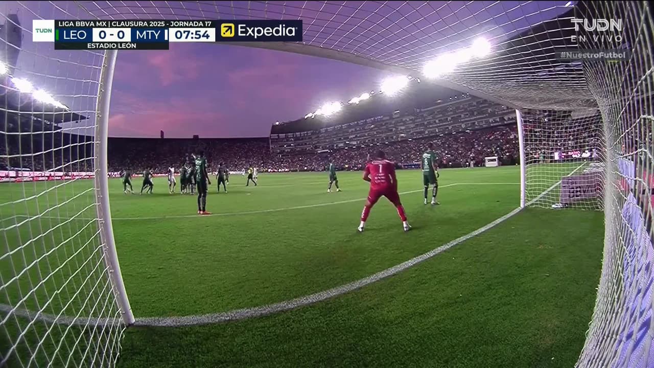 ¡Gol! León 0| Monterrey 1. Iker Fimbres (Monterrey) Disparo con la derecha desde fuera del área.