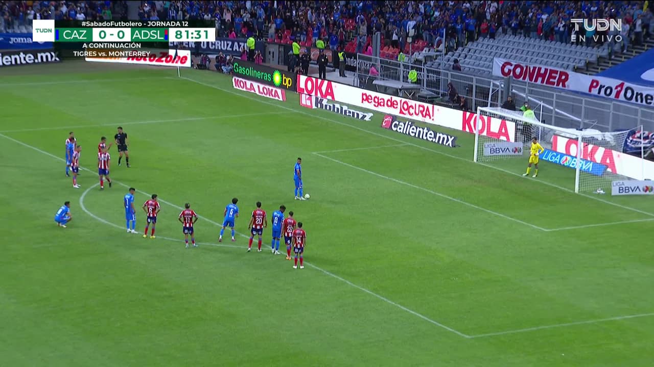 ¡Gol! Cruz Azul 1| Atlético San Luis 0. Iván Morales (Cruz Azul) convirtió el penalti Disparo con la derecha.