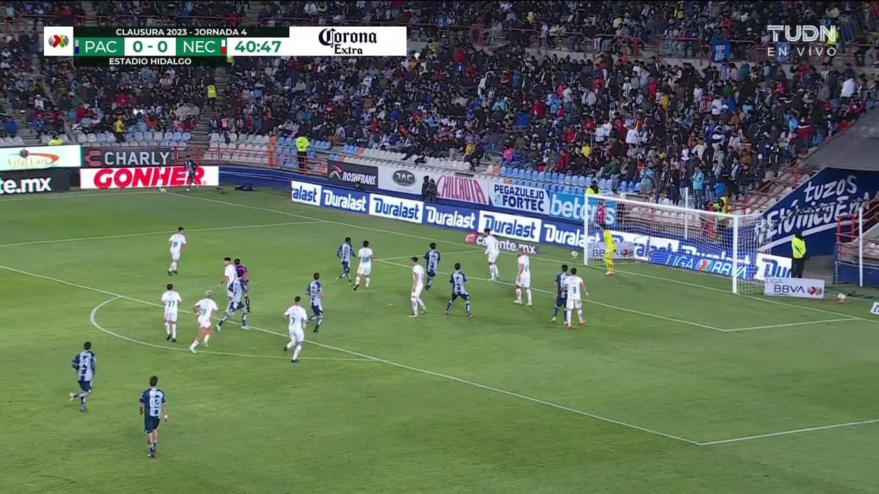 ¡Gol! Pachuca 1| Necaxa 0. Javier López (Pachuca) disparo de cabeza desde el centro del área.
