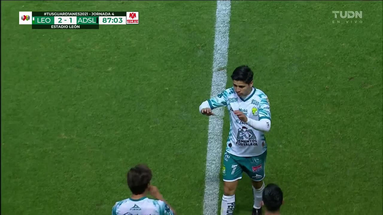 ¡Gol! León 3| Atlético San Luis 1. Jean Meneses (León) Disparo con la derecha desde el lado izquierdo dentro del área.