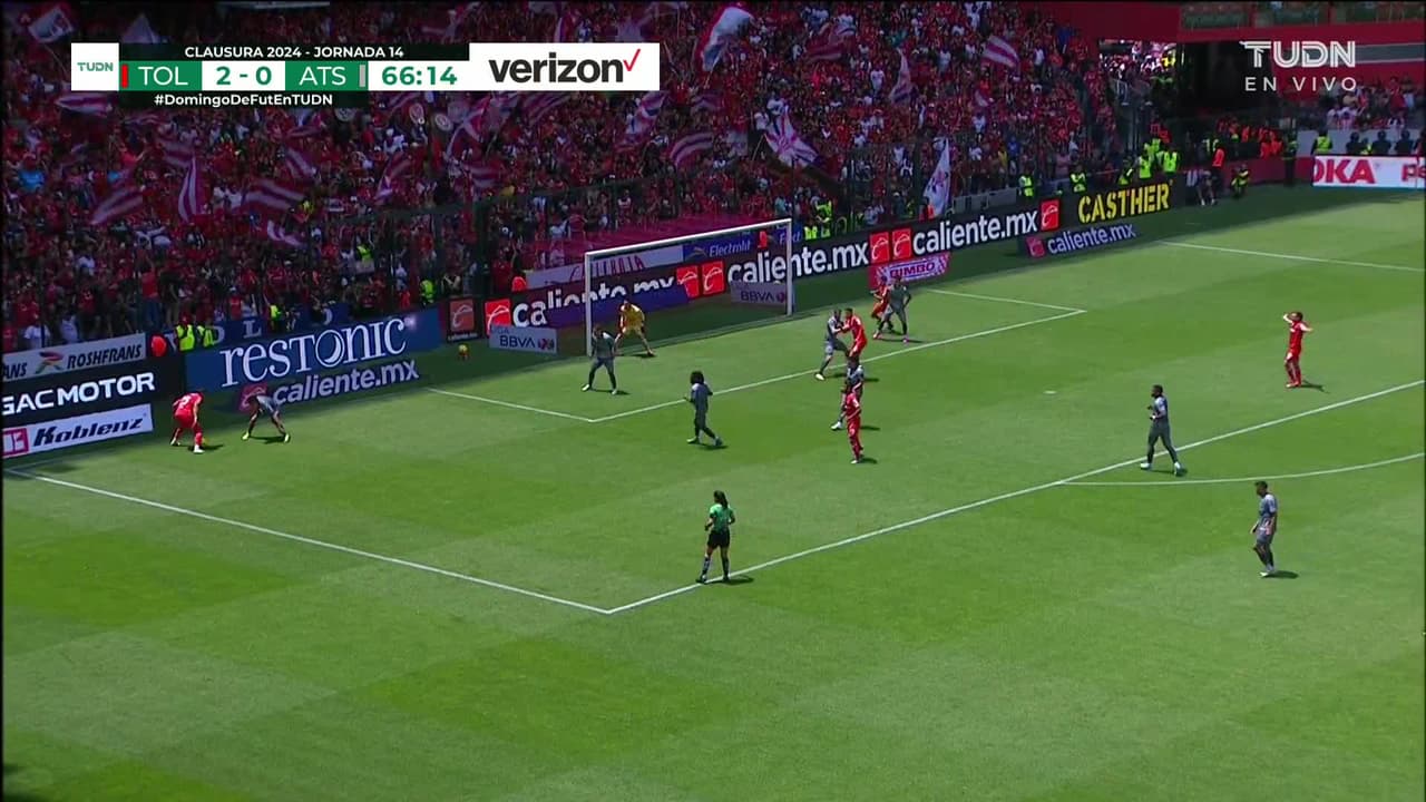 ¡Gol! Toluca 3| Atlas 0. Jesús Angulo (Toluca) zurdazo desde el centro del área.