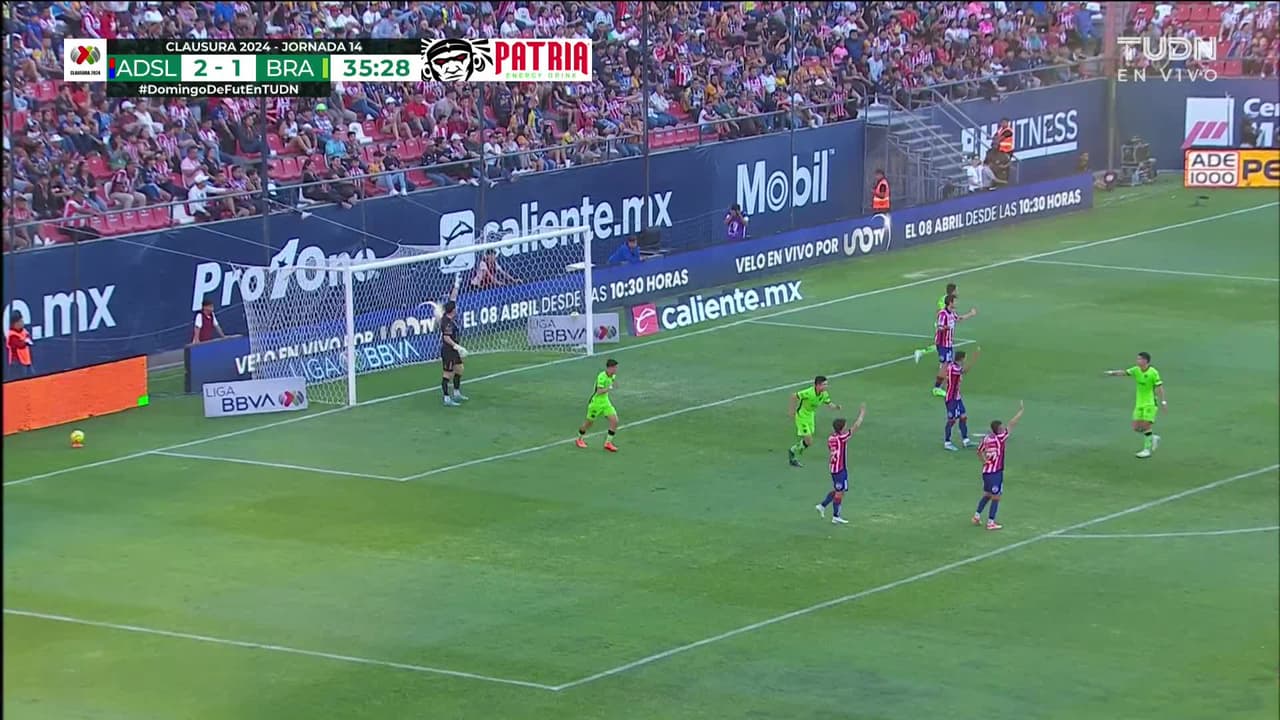 ¡Gol! Atlético San Luis 2| FC Juárez 2. Jesús Venegas (FC Juárez) disparo de cabeza desde el centro del área.
