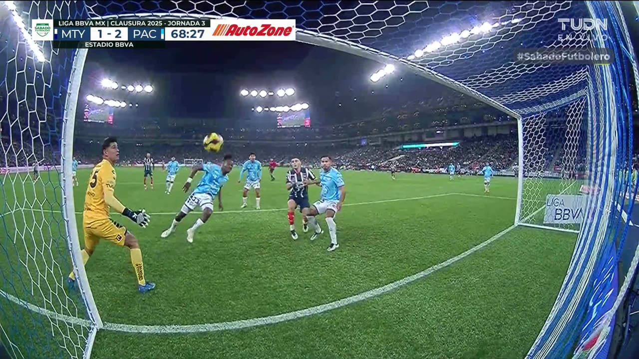¡Gol! Monterrey 1| Pachuca 3. John Kennedy (Pachuca) zurdazo desde el centro del área.