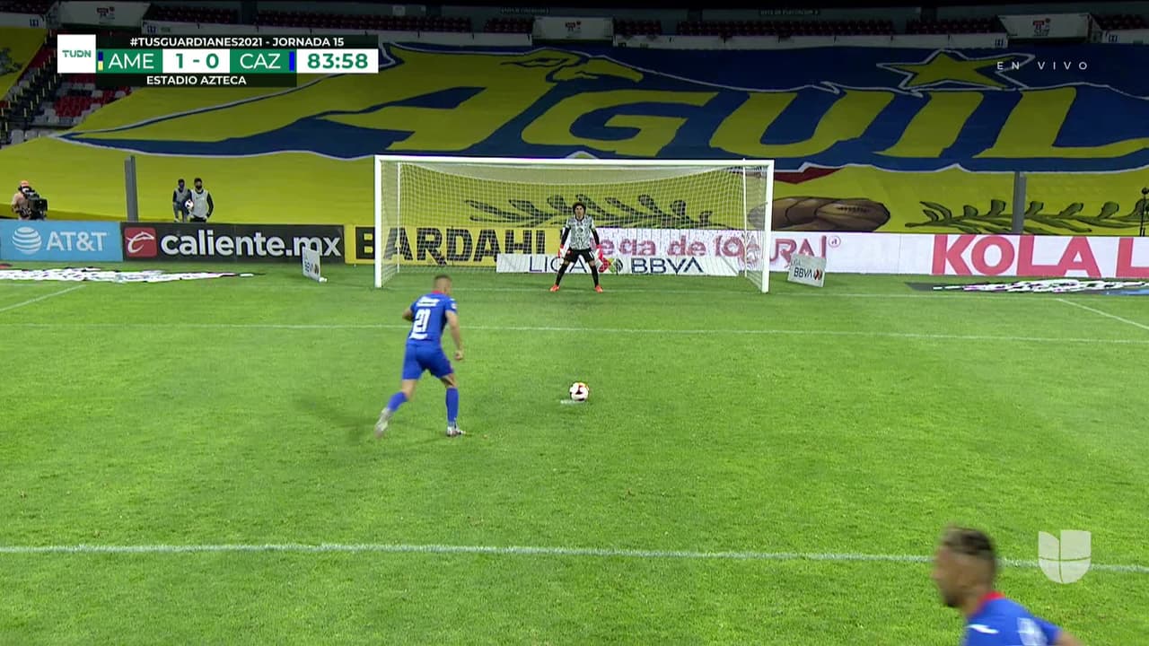 ¡Gol! América 1| Cruz Azul 1. Jonathan Rodríguez (Cruz Azul) convirtió el penalti Disparo con la derecha.