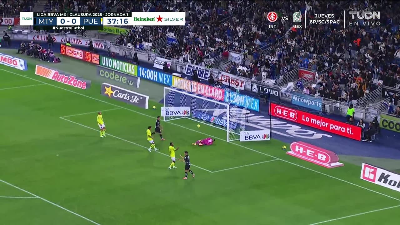 ¡Gol! Monterrey 1| Puebla 0. Jorge Rodríguez (Monterrey) Disparo con la derecha desde fuera del área.