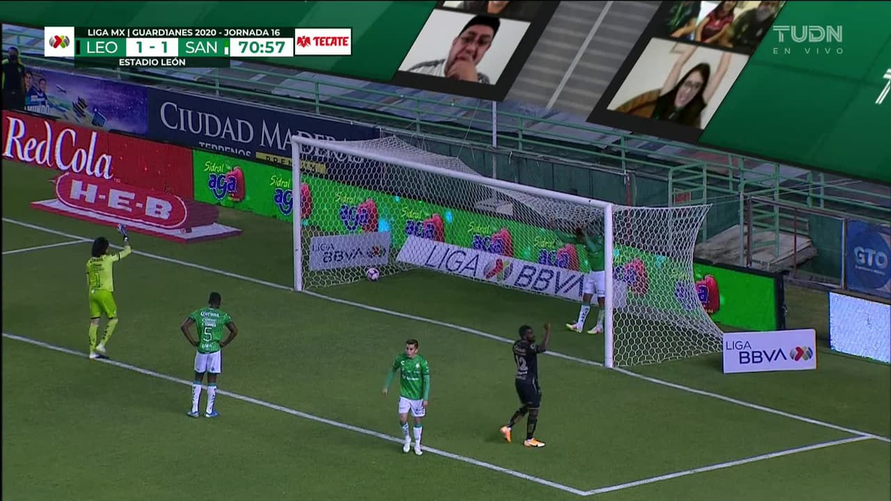 ¡Gol! León 2| Santos Laguna 1. José Ramírez (León) Disparo con la derecha desde el lado izquierdo dentro del área por el lado derecho de la portería. Asistencia de Ángel Mena.
