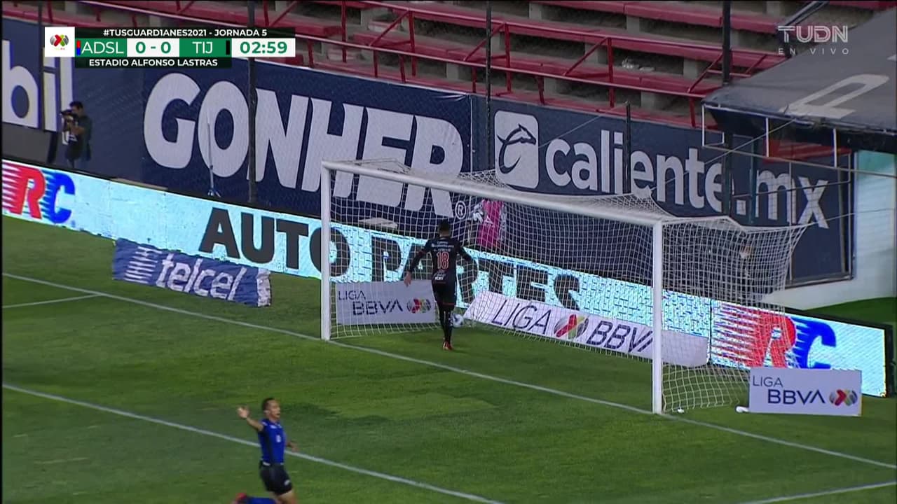 ¡Gol! Atlético San Luis 1| Club Tijuana 0. Juan Castro (Atlético San Luis) zurdazo desde el centro del área por el lado derecho de la portería. Asistencia de Damián Batallini.
