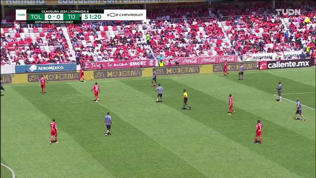 ¡Gol! Toluca 1| Club Tijuana 0. Juan Domínguez (Toluca) Disparo con la derecha desde fuera del área.