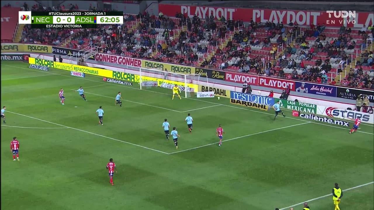 ¡Gol! Necaxa 0| Atlético San Luis 1. Juan Manuel Sanabria (Atlético San Luis) zurdazo desde el centro del área.