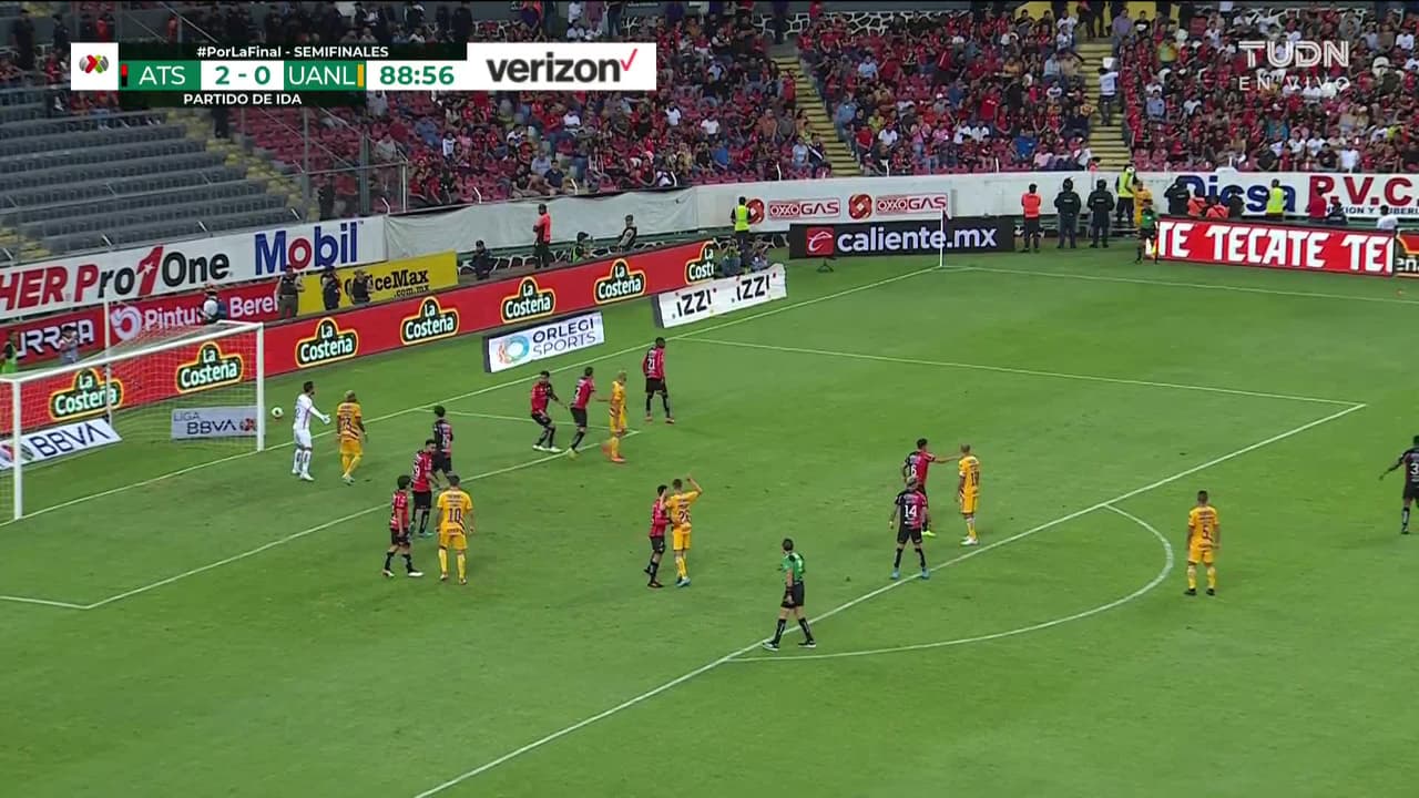¡Gol! Atlas 3| Tigres 0. Julián Quiñones (Atlas) Disparo con la derecha desde fuera del área.