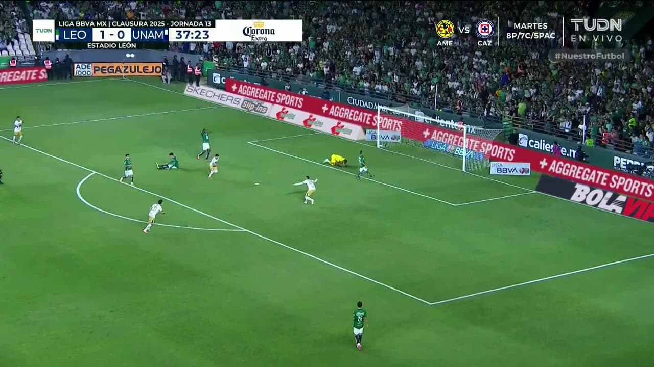 ¡Gol! León 1| Pumas UNAM 1. Leo Suárez (Pumas UNAM) zurdazo desde el centro del área.