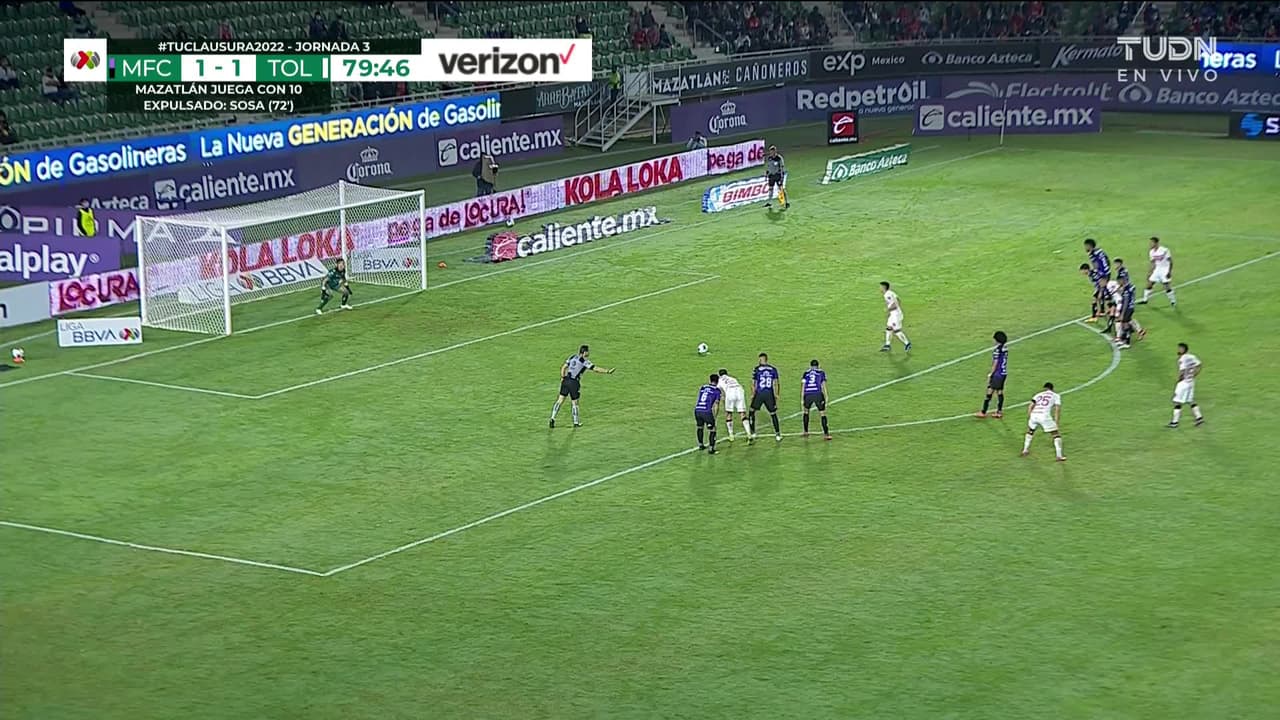 ¡Gol! Mazatlán FC 1| Toluca 2. Leonardo Fernández (Toluca) convirtió el penalti zurdazo.