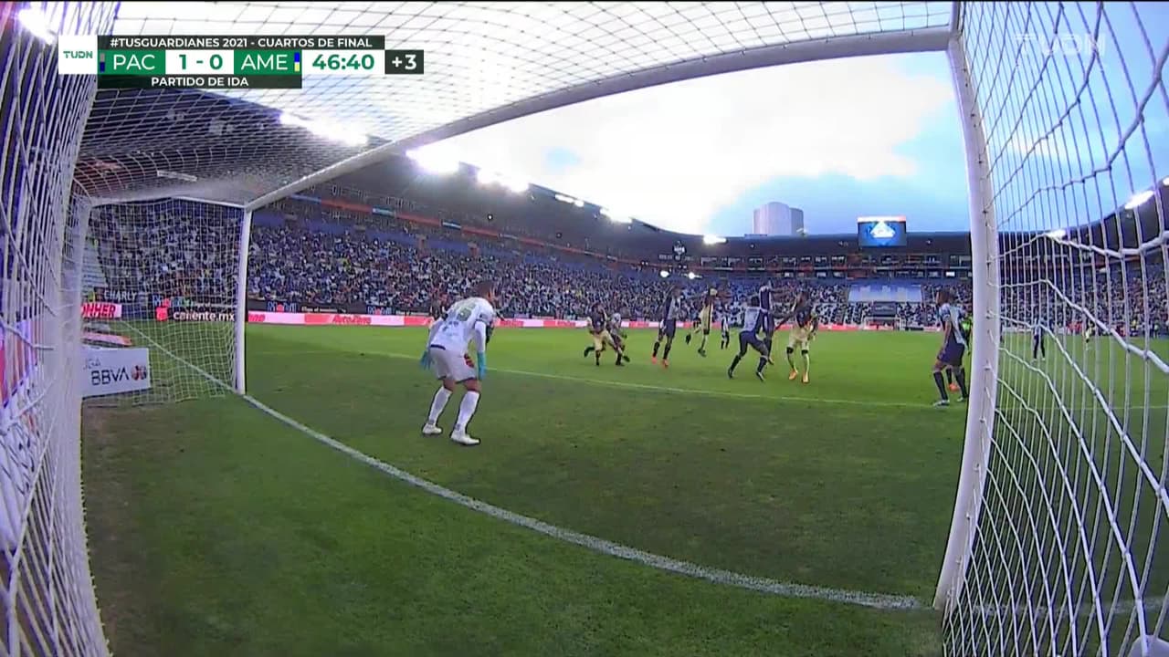 ¡Gol! Pachuca 1| América 1. Leonardo Suárez (América) zurdazo desde fuera del área disparo rastrero| junto al palo izquierdo. Asistencia de Álvaro Fidalgo pase largo.