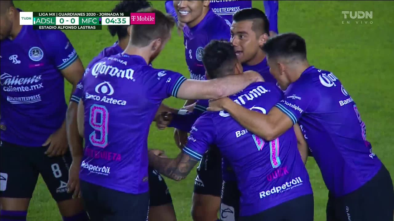 ¡Gol! Atlético San Luis 0| Mazatlán FC 1. Luis Mendoza (Mazatlán FC) Disparo con la derecha desde fuera del área por el lado derecho de la portería. Asistencia de Fernando Aristeguieta tras un saque de esquina.