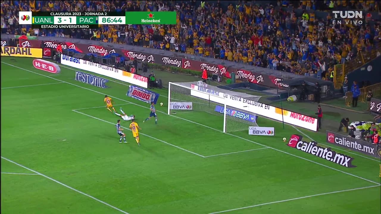 ¡Gol! Tigres 4| Pachuca 1. Luis Quiñones (Tigres) zurdazo desde el centro del área.