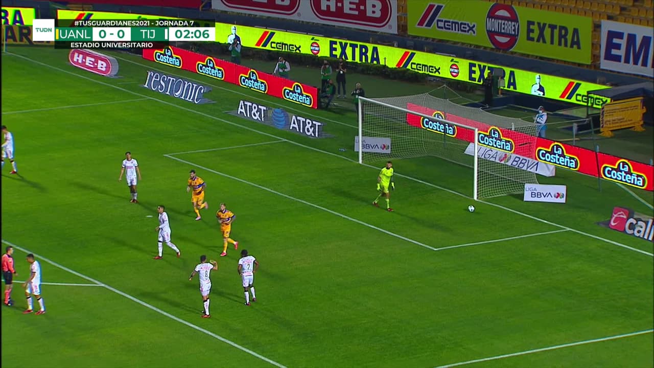¡Gol! Tigres 1| Club Tijuana 0. Luis Quiñones (Tigres) zurdazo desde el lado derecho dentro del área disparo rastrero| junto al palo izquierdo. Asistencia de Luis Rodríguez pase largo.