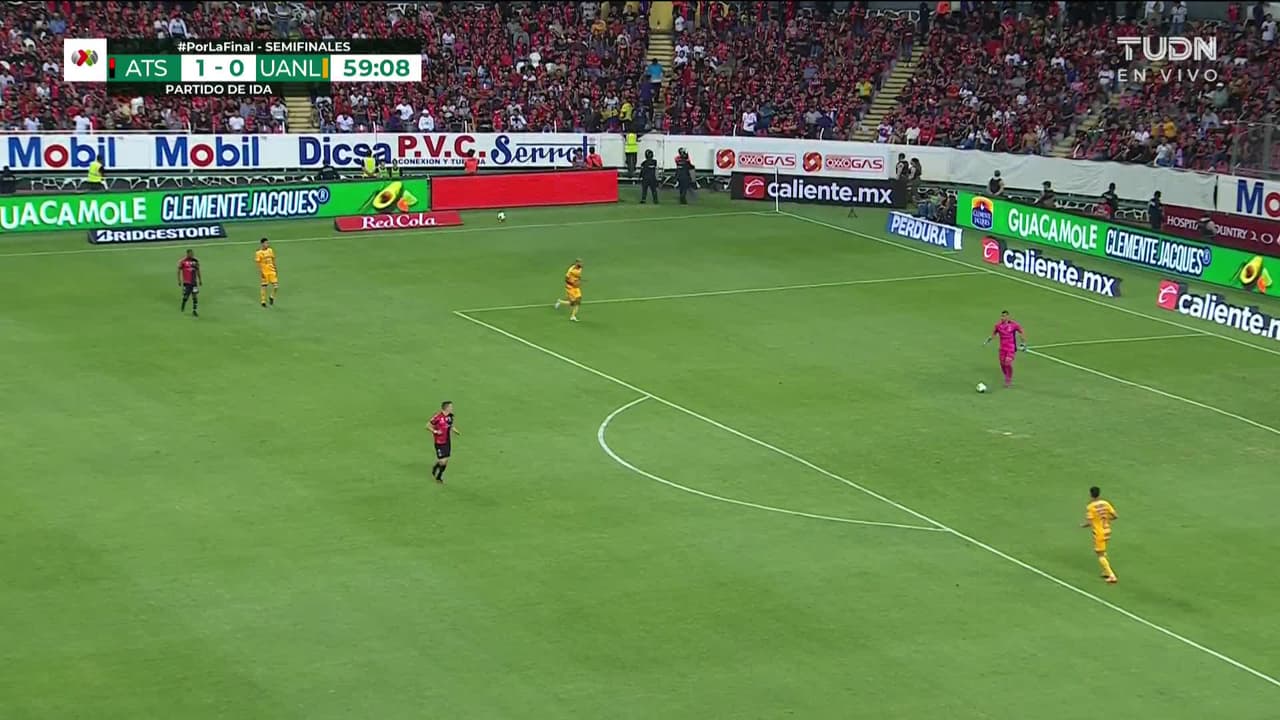 ¡Gol! Atlas 2| Tigres 0. Luis Reyes (Atlas) zurdazo desde fuera del área.