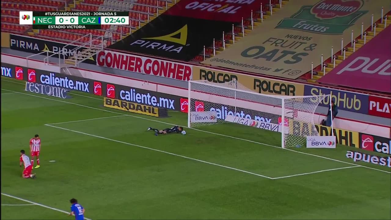 ¡Gol! Necaxa 0| Cruz Azul 1. Luis Romo (Cruz Azul) Disparo con la derecha desde fuera del área disparo rastrero| junto al palo izquierdo. Asistencia de Santiago Giménez.